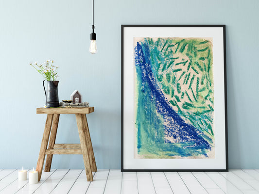 Geometric Contemporary Blue and Green Abstract Art Print